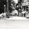 A body draws a crowd near Mrs. Thomas' Confectionary at the corner of Delavan and Humboldt in 1937.