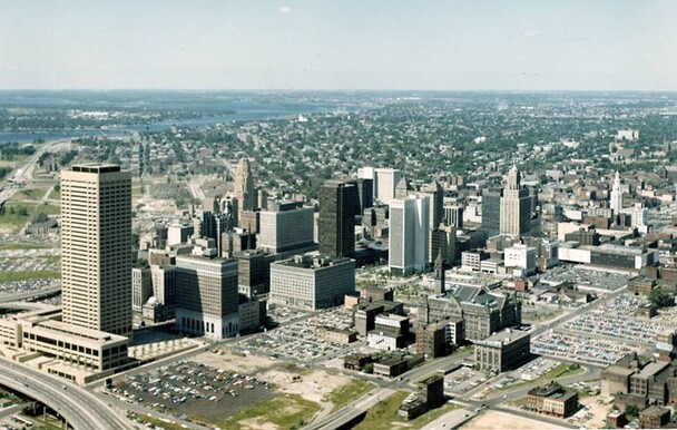 The parking lot visible beside it is the future site of Buffalo's baseball