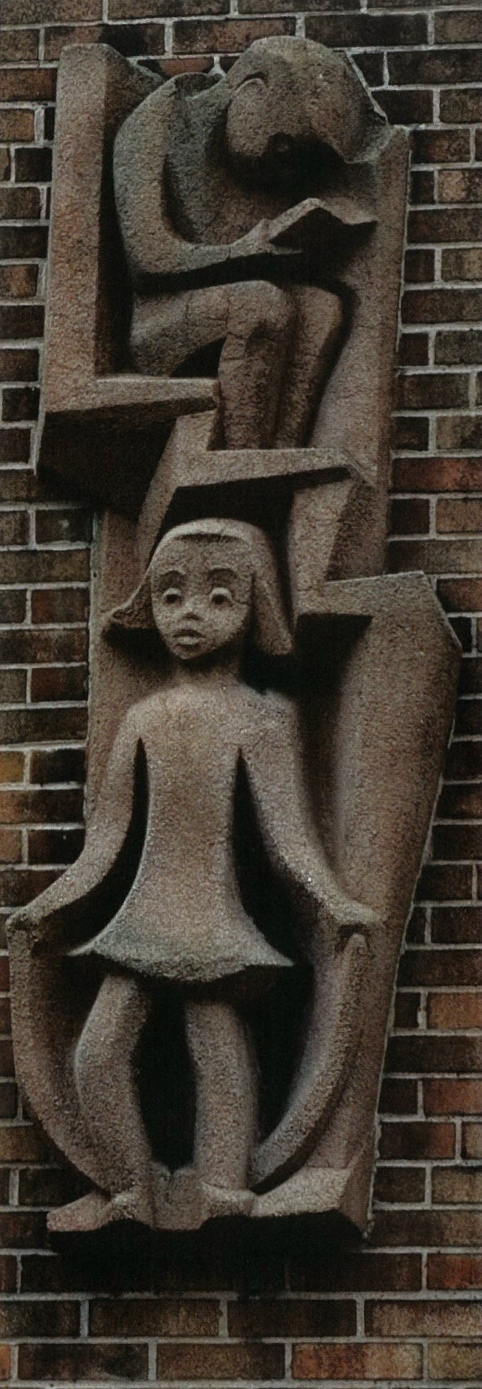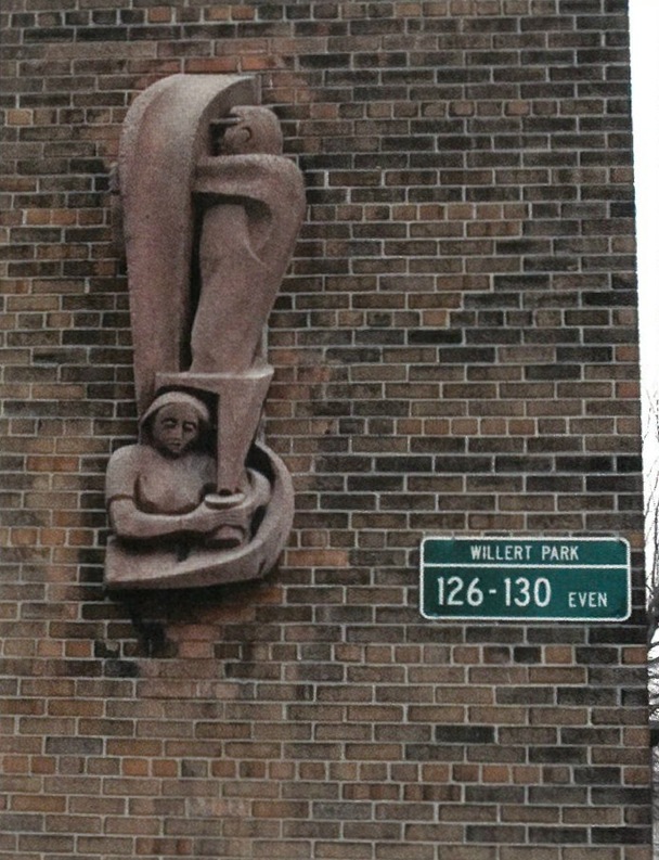 Willert Park Courts was a “New Deal” 1938 Works Project Administration (WPA) federal housing project funded by the U.S. Housing Authority. It was specifically intended for African-Americans living in the Ellicott District which was overcrowded because of residential segregation in the city. The Federal Arts Project (FAP) was assigned to provide sculpture for the project. They chose New York City sculptor Robert Cronbach to create the artwork. To prepare for the task, Cronbach traveled to Buffalo and met with a wide range of leaders in the black community. He found that they did not want sculpture that would accentuate their ethnicity but preferred everyday, domestic and pleasant scenes. Cronbach recalled, “I planned the sculpture with an architect, found a suitable vacant city-owned building and arranged for its use as a studio, worked out the casting and installation procedures for the tamped concrete sculpture who were working on the housing project, and brought fellow Project sculptor, Harold Ambellan, from New York to join me in carrying out the work.”