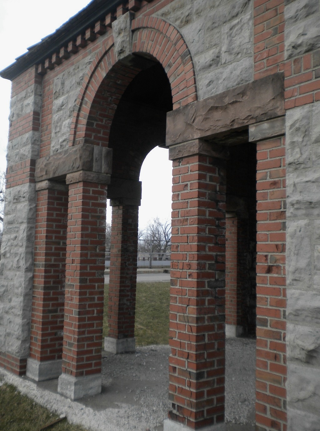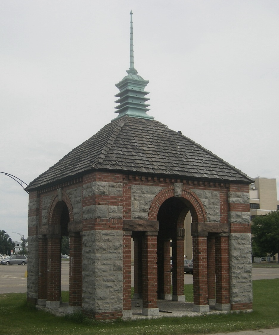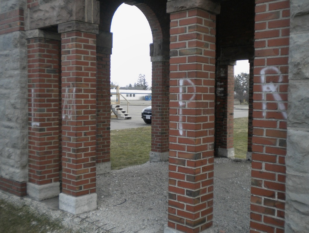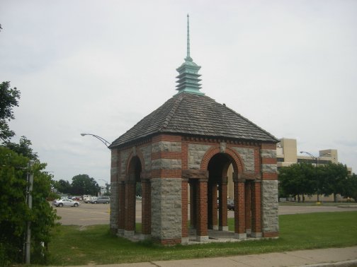 Driving along the Kensington Expressway towards downtown Buffalo, there is a slightly visible gazebo overlooking the road from the Erie County Medical Center campus just before the Scajaquada Expressway interchange. Innocuous at first sight, with the cedar-shingle roof and concrete foundation showing signs of decay, a closer look reveals a well-designed structure that baffles many a modern observer as to its original purpose. Sturdily built of brick, limestone and sandstone, the building’s highlight is the copper cupola adorning the roof, which has caught the eye of many a curious passerby.