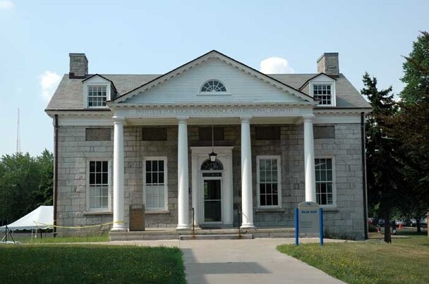 The firm of E.B. Green designed the small building in 1930-31 to house the University bookstore. The external design is a nearly exact copy of the Holland Land Office (below). E.B. Green had a few years earlier won the rights to design the master plan for the University which resulted in the above building, Crosby Hall, Lockwood Library, Norton Hall, Clark Gym, the Service Building and redesign of Hayes Hall. The firm later designed the Parker Hall Engineering building before the master plan was discarded in the 1950s. For more information on the history and uses of the building now known as Beck Hall, look here.