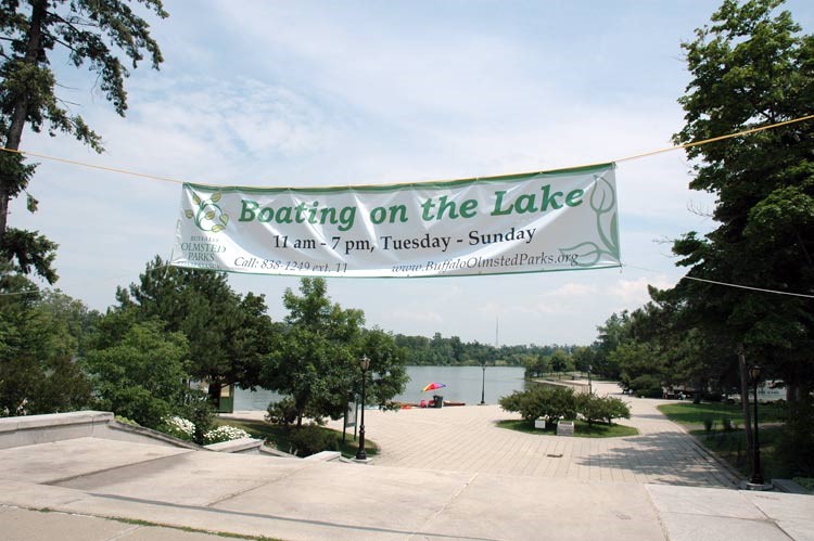 The Park Lake (aka Delaware Park Lake and presently Hoyt Lake) was once the scene of Sunday boating while bands played along the shore. According the Buffalo News, boat rentals ceased in the 1950s because the lake was polluted.
