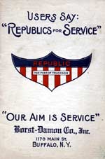 The Borst-Damon Company were dealers in Republic Trucks and published this booklet in 1917 as an advertisement for Republic Truck reliability and Borst-Damon's service. The booklet is a compilation of photos of Buffalo companies that own Republic Trucks from Borst-Damon and their accompanying testimonials to the trucks' ability to carry loads without breaking down.