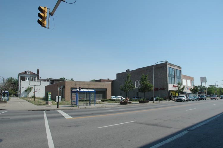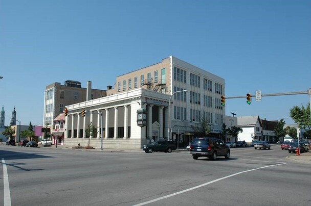 The building constructed for the Union Stockyards Bank in 1909-1910 was designed by Robert North in the Neo-Classical style. It later became a branch of the Liberty Bank, and now houses a branch of the Bank of America.
