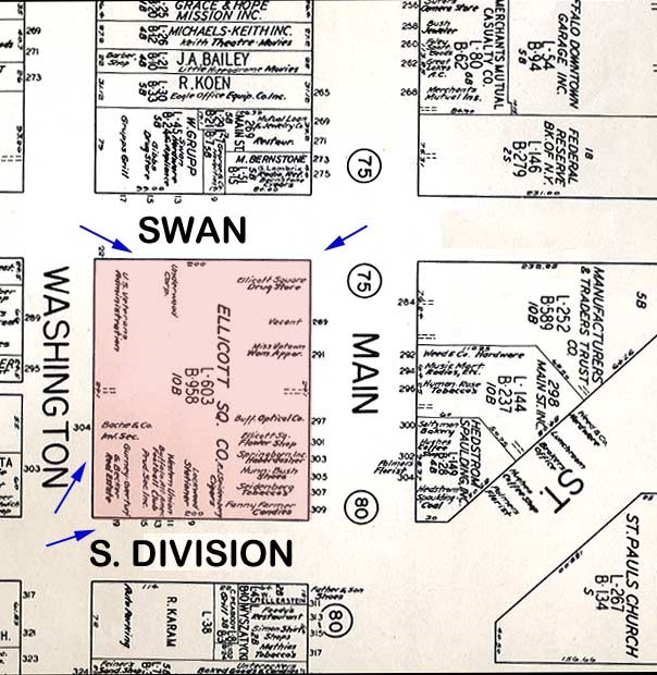 The year is 1895. The scene of the crime is the city block bordered by Swan, Main, South Division and Washington Streets. The entire block, four streets of businesses and factories, are about to be demolished entirely.