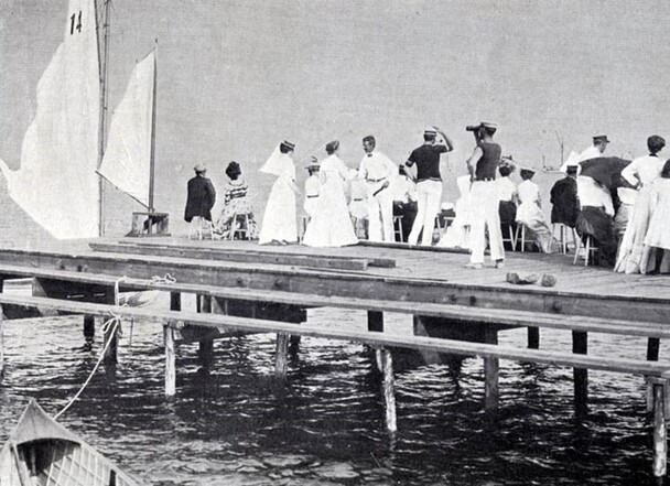 The Buffalo Yacht Club and its pier, viewed from the water, c. 1895. Image source: private collection.
