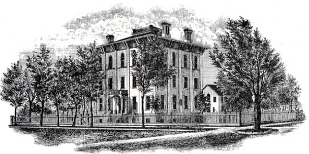 At the edge of Niagara Square, bounded by Court and Franklin Streets, early Buffalo resident General David Burt built this mansion. In 1851 his family sold the property to the City of Buffalo for use as a school.