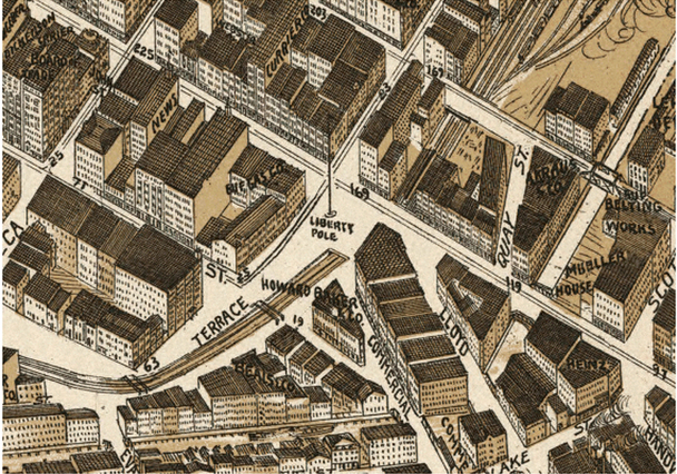"It was expected the 'huge stick' would last much longer than the first pole, but sixteen years of storms and sunshine played havoc with the wood. On Independence Day, 1877, the residents of Buffalo once more assembled at Main Street and the Terrace to dedicate their third Liberty pole.