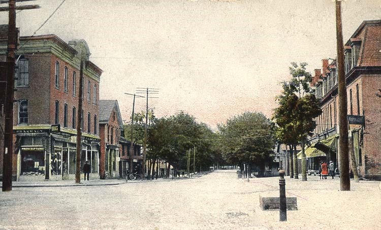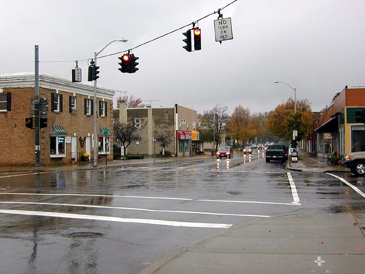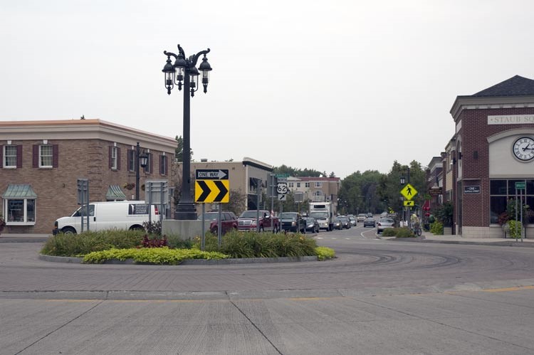 The same scene in 2011. Traffic roundabouts have been installed, eliminated signals.