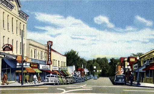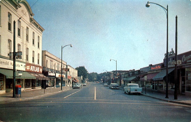The same view in 1957 (postcard published by Zamm's 5 Cent to $1.00 Store, Hamburg)