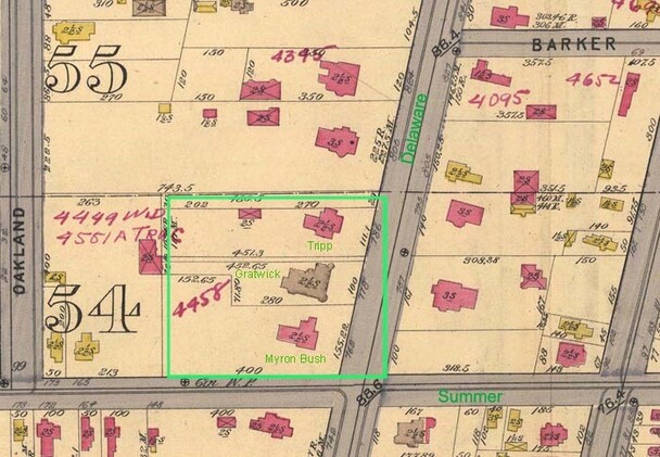In 1919, Goodyear and Stephen Clement, who had demolished the Prosser/Tripp mansion at 786 Delaware in 1910 and built his own  mansion (see images below), purchased the Gratwick mansion and demolished it. They divided the land between them, creating two