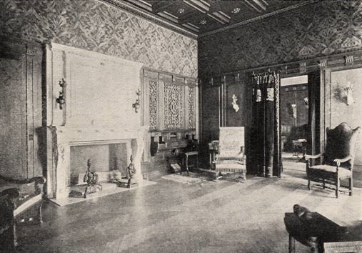 The living room is paneled with carved mahogany and its great fireplace is of marble. Adjoning the living room are a hall with an organ and a reception room only slightly smaller than the living room. On the second floor are six large bedrooms, each with a marble fireplace. The stone, like many of the furnishings, was collected by the elder Mr. Goodyear from all parts of the world." (News, October 10, 1938).