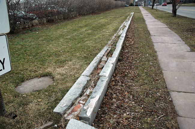 All that remains in 2007 of the wall that surrounded the garden/fountain court along Summer Street.