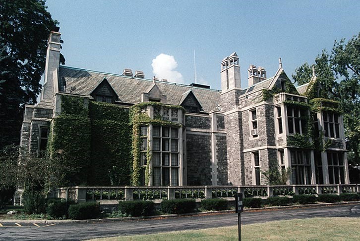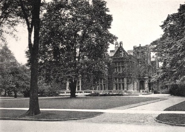 mansion of Indiana Limestone and grounds, divided and surrounded by walls.