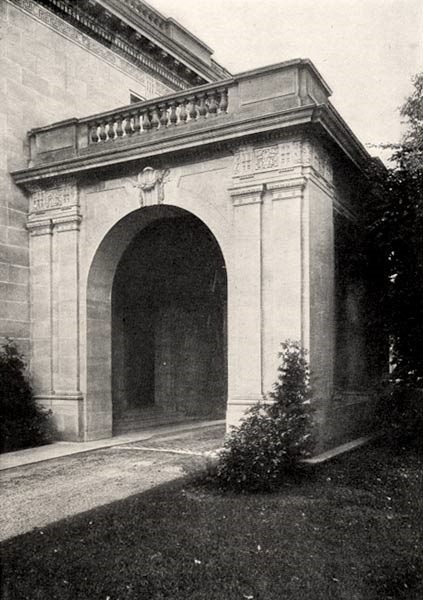 Service court, walled at left from the Delaware Avenue drive, at right from the garden court. Image source: private collection.