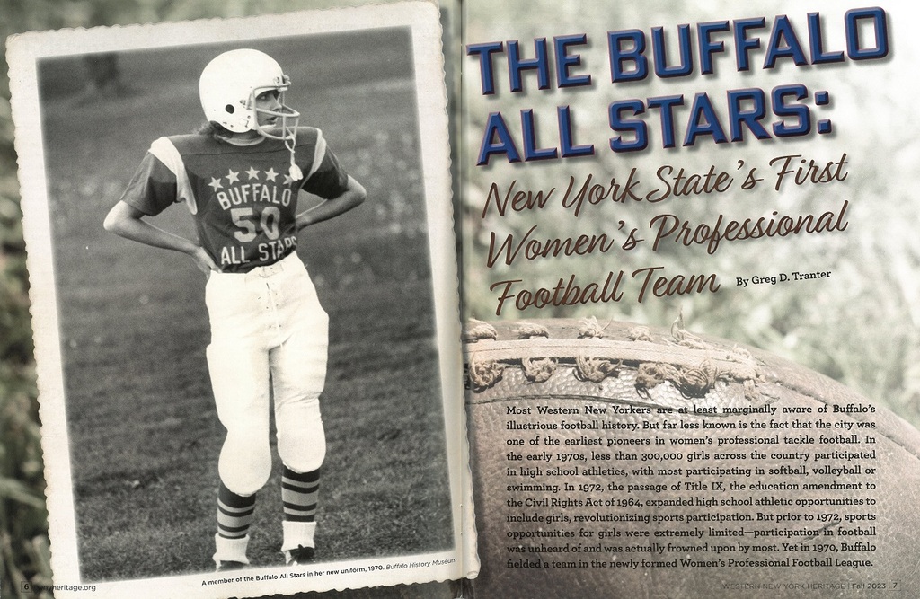 When Greg approached us about the story of the All-Stars—New York State’s first women’s professional tackle football team—he revealed that sharing the story with our readers was only part of the plan. He also wanted to work with the Buffalo Public Schools, the Buffalo Arts Commission, the mayor’s office and others to create an historical marker that would commemorate the first women’s professional tackle football game played in New York State.