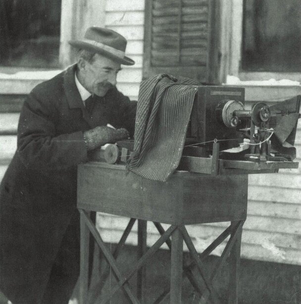 Wilson Bentley with the “apparatus” he created by connecting his camera with his microscope to allow the photographing of snowflake structure. He used the same equipment for the rest of his life.