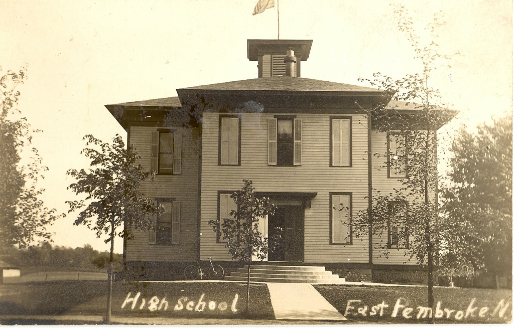 The schoolhouse in East Pembroke that began as the Rural Seminary closed its doors in 1939 when the new, $300,000 East Pembroke school was built on the corner of Main Rd. and West Ave. The original schoolhouse was torn down after the completion of this new school, and the rear building that housed the gymnasium became the East Pembroke Grange.