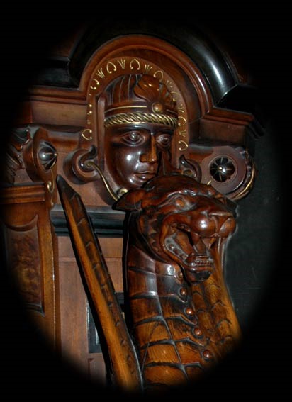 Detail of the newell post from the Fargo Mansion, now on display at the Buffalo & Erie County Historical Society.