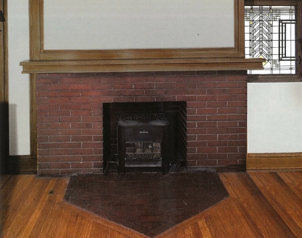 There are two upstairs bedroom fireplaces that have chevron-shaped hearths.