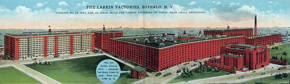 c. 1920 Postcard of the Larkin complex located in the heart of Buffalo's southside industrial section between Exchange and Seneca Streets.