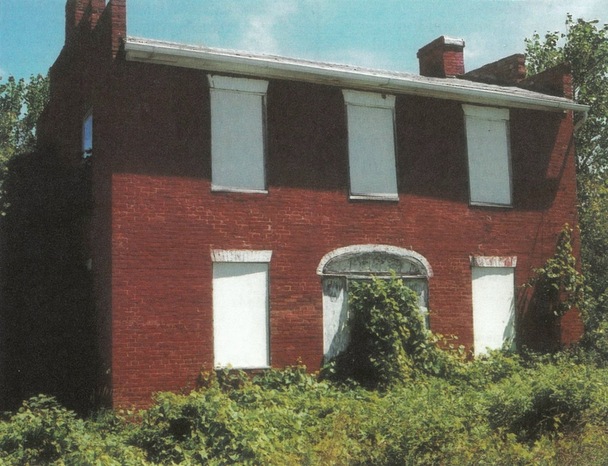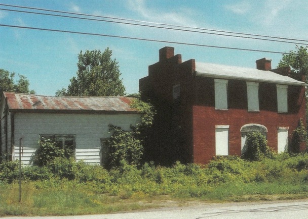 The early brick Federal-style building with distinctive stepped parapet gables stands at the intersection of Pavilion Center Road and Route 20, in the town of Pavilion. Boarded up and abandoned, it is now, unfortunately, a victim of overgrowth.