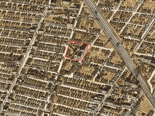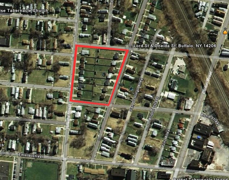 1900 Map showing the block largely occupied by the Niagara Starch Works, bounded by Lord, Oneida, Bond and Howard Street.
