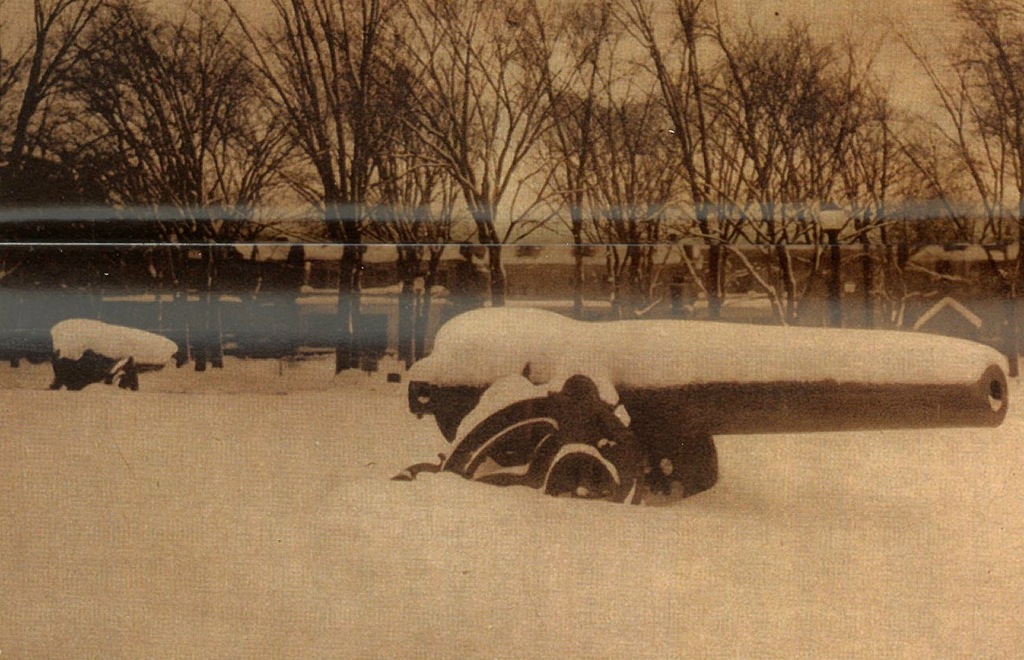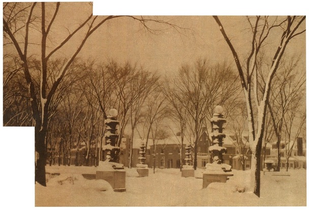 The Soliders and Sailors Monument at Lafayette Square. The Lafayette branch of the Public Library background.