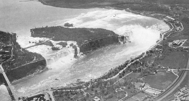 Niagara Falls. Note the park-like setting on the Canadian side, in contrast to today’s casino-driven commercialism.