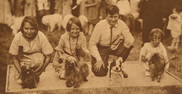 The Buffalo Courier sponsored a dog competition for its “Jolly Juniors.” Judges William A. Thompson and Mrs. J. Homan Pardee pose with winners Justin Tobias, Marion Morris, Jack Erwin Morgan, and Elvira Daut (and friend).