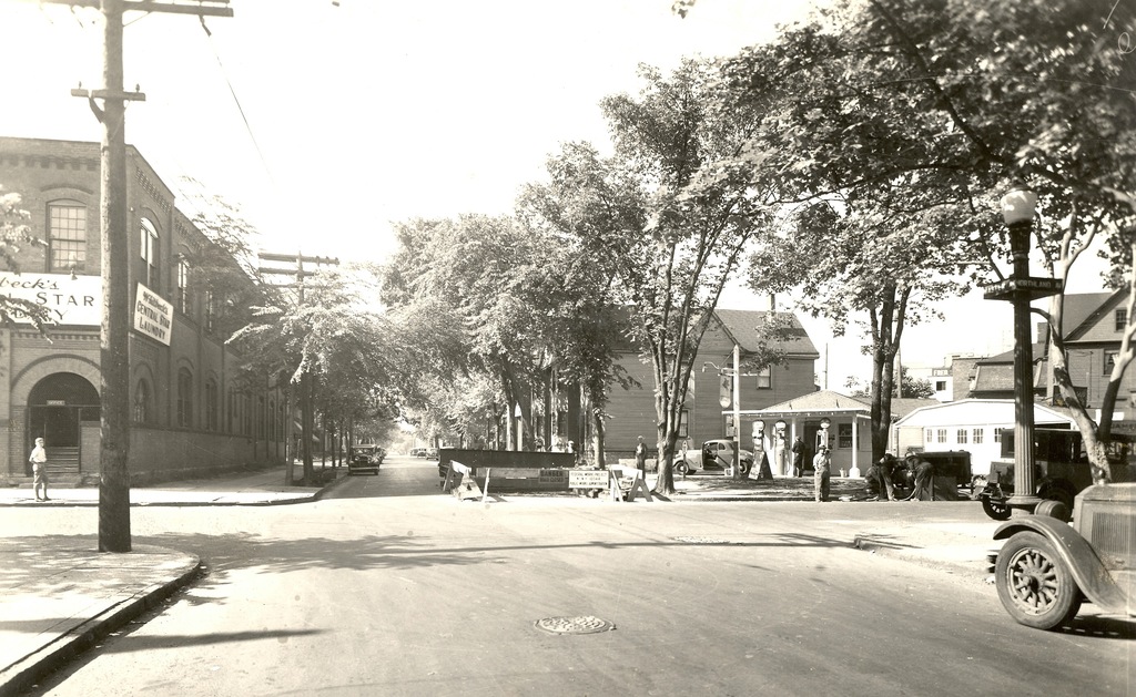 The work done along Masten Avenue seems to be some of the best documented in our collection. Here is a view of the intersection of Masten and Northland Avenue, June 25, 1936. While the work has yet to begin, the barricades and signs are being erected. Whitbeck’s Central Star Laundry is on the left of the street.