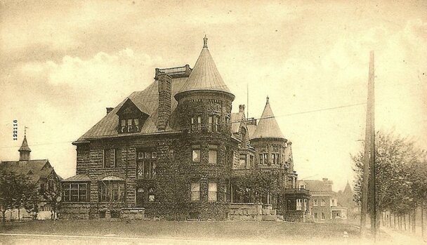 The Eberhardt mansions cost $15,000 each to build in 1893. In this view looking north along Delaware Avenue, Fred Eberhardt’s home is in the foreground, with LPA’s next and George Eberhardt’s more modest $8,000 home (a wedding present from LPA) in the background. The Fred Eberhardt home would later become the Wheel Chair Home and LPA’s mansion became the YWCA. Only the Fred Eberhardt home still stands today at the entrance to the Village of Kenmore.
