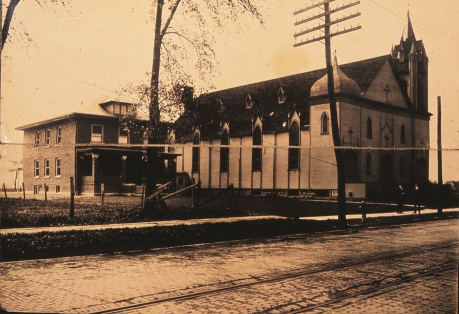 St. Paul’s Roman Catholic Church was founded in 1897 at the corner of Delaware and Victoria avenues, on three acres donated by the Mang and Keller families. The rectory was added in 1910. The streetcar line to Tonawanda was put through the village in 1894 when Delaware was paved with brick. Within a decade it became a speedway for newfangled automobiles.