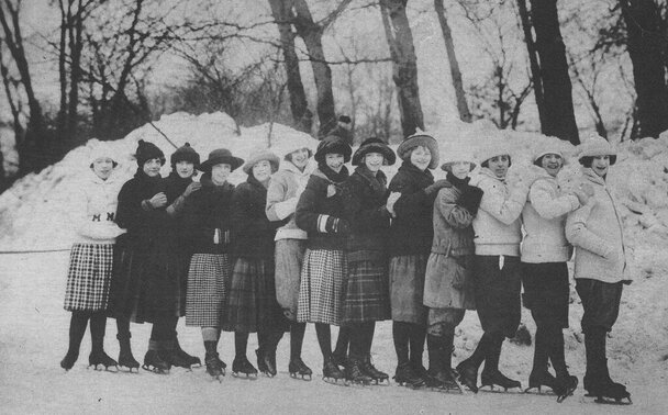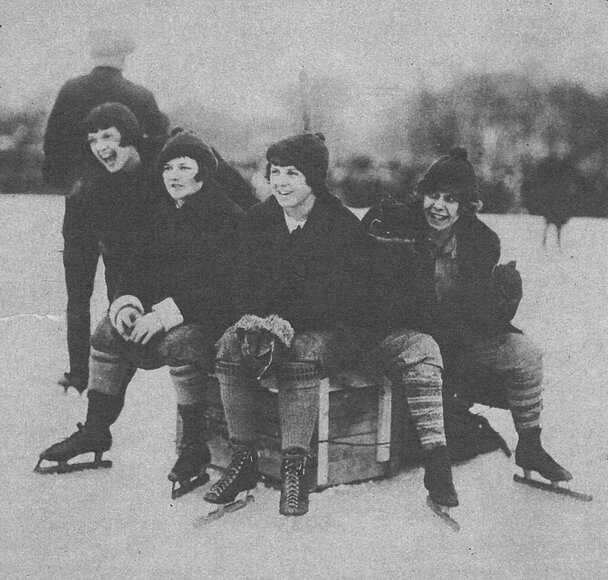 Young ladies line up for the camera while attending the skating carnival at Cazenovia Park.