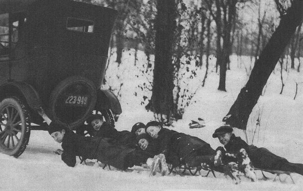 Don’t try this at home!! Some adventurous boys take a sled ride around Delaware Park—courtesy of a moving car.