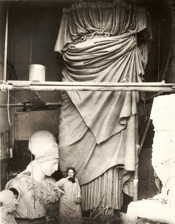 Enid Yandell with her sculpture of Pallas Athena, 1896.