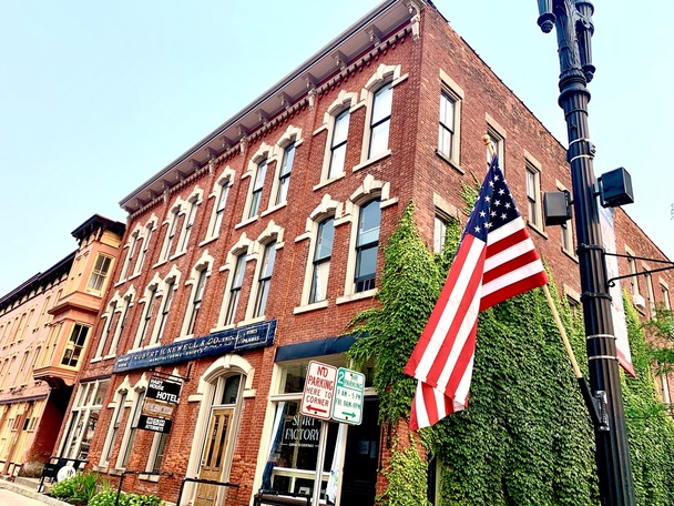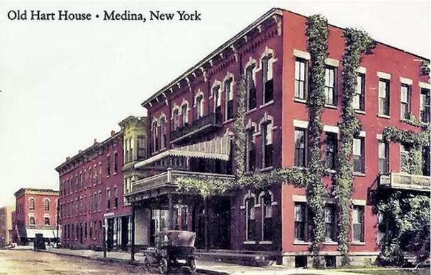Located at 113 West Center Street in Medina, the 145-year-old, ivy-covered, red brick, three-story building was built around 1876 by Jacob Gorton. Originally known as the Gorton House, it was soon bought by banker, congressman and philanthropist Elizur Kirke Hart, and the name changed to Hart House Hotel. It operated as a first-class hotel until 1918 when it changed owners once again.