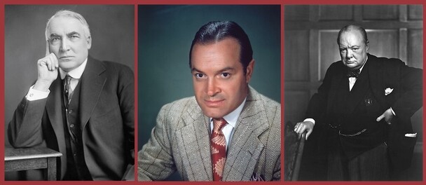 Harding: Harris & Ewing, ca. 1920; Hope: Hulton Archive Getty Images, 1957; Churchill: Library and Archives Canada, 1941