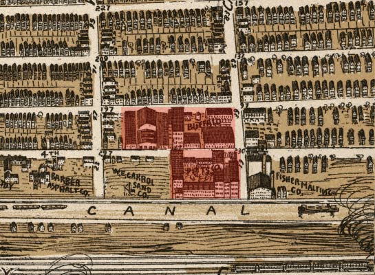 The Buffalo Pitts manufacturing complex was located close to the Erie Canal and Buffalo harbor tran-shipment venues, occupying the blocks at Carolina and 4th Streets in the city.