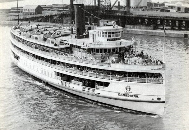 The Canadiana was 216 feet long with a 56 foot beam; it was steel-hulled with a three-deck wooden superstructure. Its 974-ton bulk was powered across the lake by a 1,446 horsepower triple-expansion steam engine, whose workings were visible to passengers through an opening in the main deck.