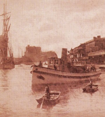 There were idlers and curiosity seekers there. Young boys and men alike went sightseeing there to be entertained by the noise and activity, listening to the shouts of sailors and wharf men operating creaking hoists and winches, skidding barrels and loading them onto long-tailed dray carts and horse-drawn wagons of every description. The background noise was regularly punctuated by steam whistles, ship bells and the tooting of the canal boatman’s horn.