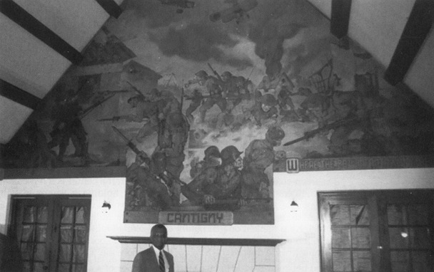 Battle of Cantigny, France May 28, 1918 painted by noted African American artist H.H. Crawford. This was painted as a Works Progress Administration project. The gentleman in the foreground is Derrick Byrd Jr., Member Board of Trustees, Western New York Heritage Institute.