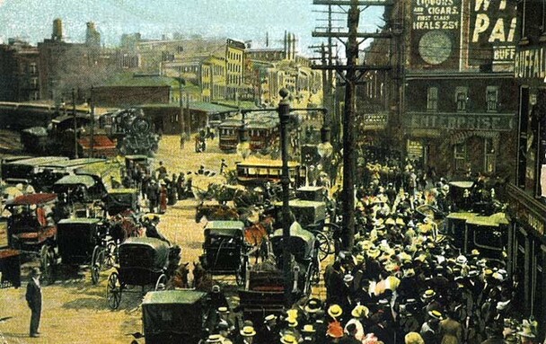Another view of the foot of Main Street; the old D. L.& W. terminal visible upper left above.